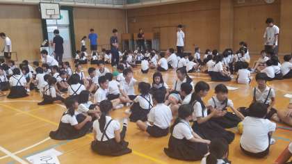 いつ合図があるかわからない中で、ボール回しにも駆け引きがあり、みんな楽しそうにゲームをしていました。集会委員の皆さんいつも楽しい集会をありがとうございます。