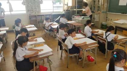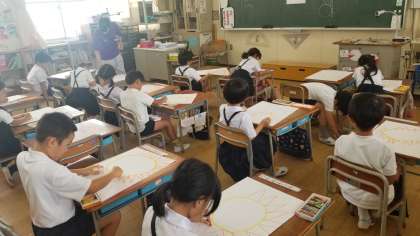 観察後、みんなでひまわりの絵を描きました。