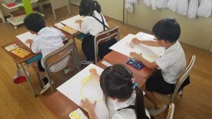 子どもたちは植物に愛着と関心を持ち、成長や変化から命のあることに気付きます。そして絵を描くことで、大きく育ったことの喜びを伝えあいます。みんな大きくて元気なひまわりを描いていました。