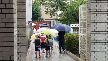 1・2年生が下校開始しました。気をつけて帰りましょう。学校で借りた傘は明日持ってくるようにしましょう。