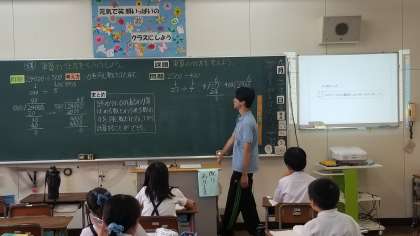4年1組の授業の様子です。算数の授業を教育実習生が行っていました。緊張感をもって頑張っていました。