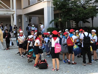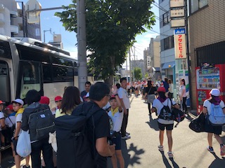 さあ、いよいよ出発です。行動班に分かれてバスに乗り込みます。気を付けていってらっしゃい。