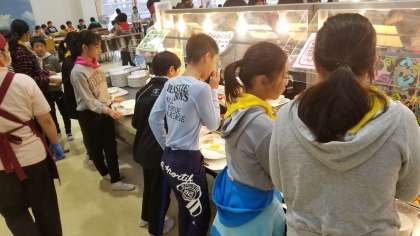 朝食の様子です。混乱なくメニューを選んで食べています。