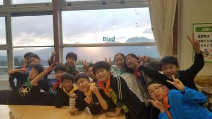「先生、きれいな夕陽」と教えてくれました。その景色をバックにポーズです。