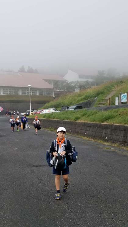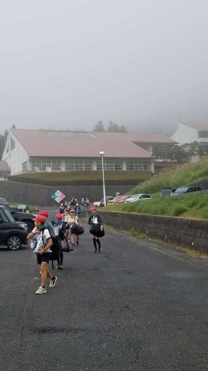 霧の中、バスに移動です。
