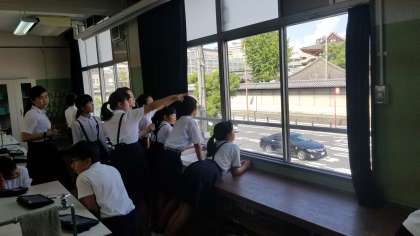 5年1組の理科の様子です。雲について学習していました。窓から現在の雲を観察して、なんという雲なのか確認していました。
