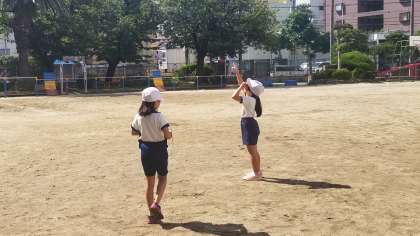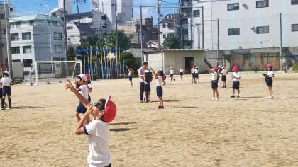 3年生が太陽めがねで太陽の観察しています。そして観察している児童の影をタブレットで撮影しています。