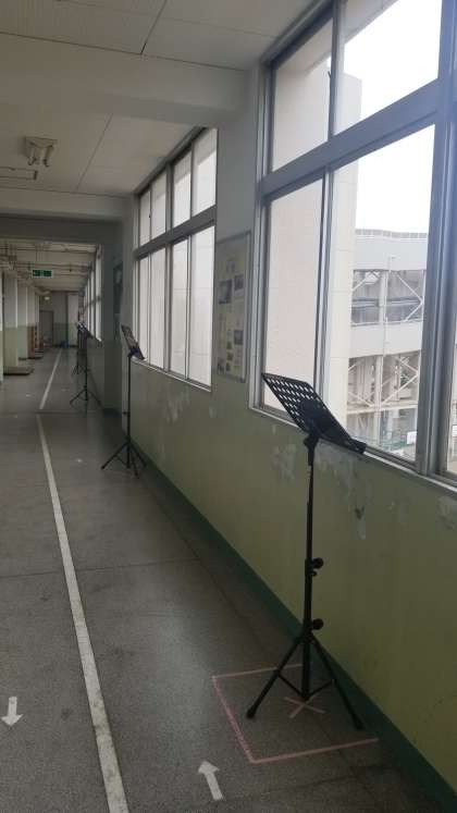 5年生が、タブレットを使って雲と天気の変化の様子を撮影しています。理科の授業で活用します。