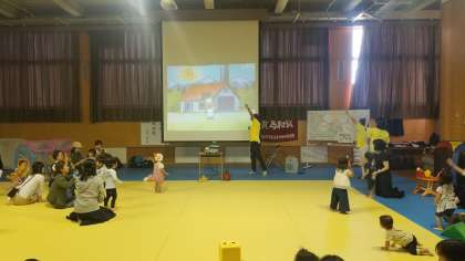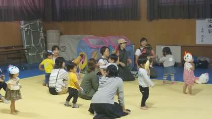 本日、子育て支援サークル「ひまわり」が天王寺中学校ありました。柔道場でバルーン遊びやアンパンマン踊りで楽しくすごしました。