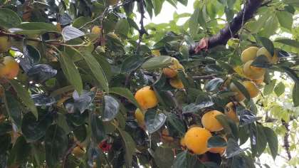 秋真っ盛りです。うさぎ小屋横の柿の木です。実がいっぱいです。