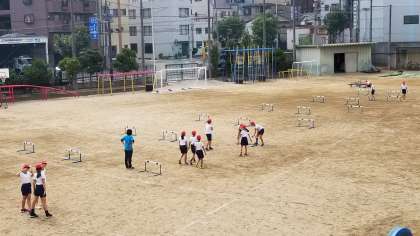 体育はハードルです。リズミカルに飛び越せると、とても気持ちのよい種目です。