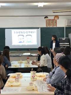 給食調理員の話や給食ができるまでのビデオの鑑賞、栄養教諭の講話など給食・食育に関して知っていただく機会をもつことができました。ご参加いただいたみなさん、ありがとうございました。