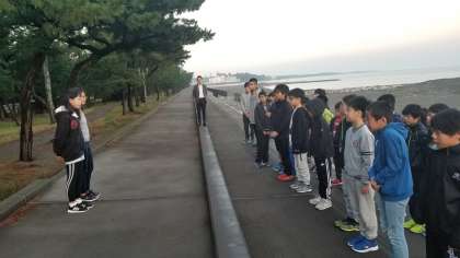 おはようございます。修学旅行二日目です。全員元気です。朝の集いの後、天王寺体操を行いました。