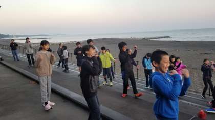 元気に朝の体操をしている様子です。