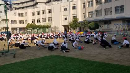 本日体育朝会を行いました。今日の体育朝会はボール遊び運動です。しっかりと準備運動して、バスケットやサッカーなどのボール遊びやボール運動を行いました。