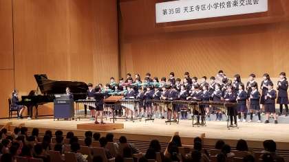 今日、4年生がクレオ大阪中央で行われた天王寺区音楽交流会に参加しました。合唱曲は「Believe」、合奏曲は「名探偵コナン」メインテーマです。練習の成果をしっかりと発揮することができました。心に沁みる歌声と心に響く演奏でした。