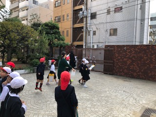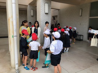 それぞれの班で、見守ってくださる保護者の方にご挨拶とお願いをして、いざ、出発です。