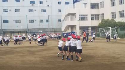 本日、運動場・体育館で体育朝会を行いました。運動係の児童がしっかりと準備をしてくれました。