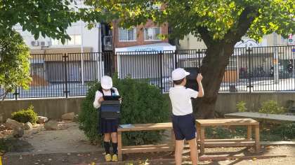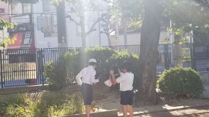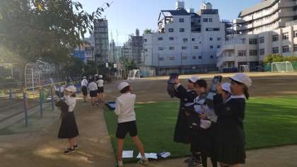 4年2組の理科の様子です。「秋を見つけよう」と季節の中で変化する植物の様子をタブレットで写していました。