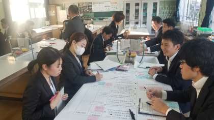 放課後、研究討議会を行いました。授業を振り返り、ワークショップ型の研究討議を行いました。