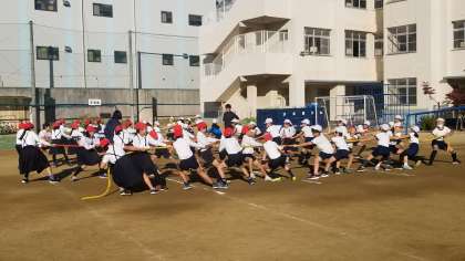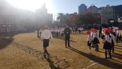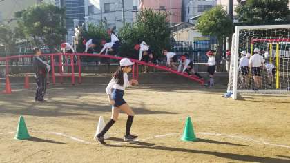準備運動の後、委員の児童が運動の説明してスタートしました。