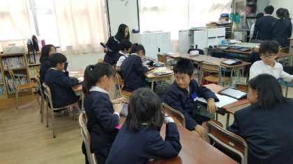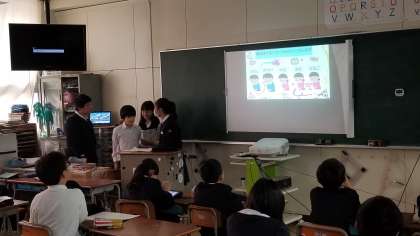 5年2組の授業の様子です。調べたことをパワーポイントで発表しています。発表後、感想を話し合っていました。