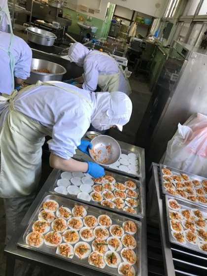 給食調理員さんは今日もおいしい給食を頑張って作ってくれています。