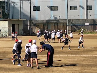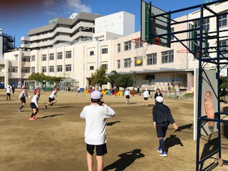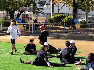 今日は日差しが暖かいので、運動場にたくさんの子どもたちが出て、めいめいの遊びをしていました。
