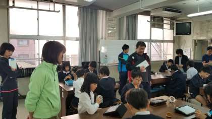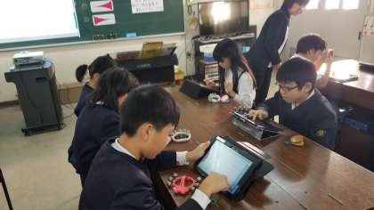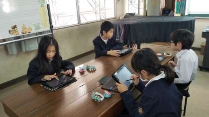 昨日、4年1組の授業研究を行いました。教科は音楽です。楽器の音色や旋律の特徴を生かして音楽を作る授業です。タブレットを使って違うパターンの音楽を作っていました。