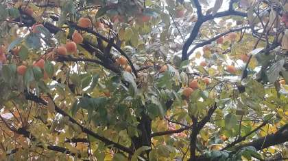地下道階段横の柿です。一度収穫して、全児童に配りました。まだたくさん柿の実が残っています。残りは鳥さんのために残しておこうかな。