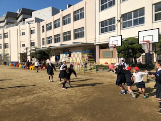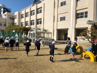 午後からは暖かくなりましたね。子どもたちは、しっかり給食を食べた後、運動場で元気に遊んでいます。