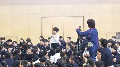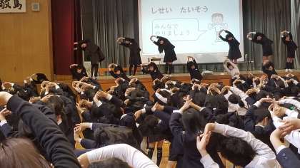 私たちの姿勢が、学習や健康に影響することがとてもよくわかりました。みんなで「しせいたいそう」も行いました。最後に全校児童より意見や感想を発表してもらいました。保健委員会のみなさん、ありがとうございました。