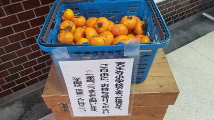 校内で収穫した柿です。お持ち帰りください・