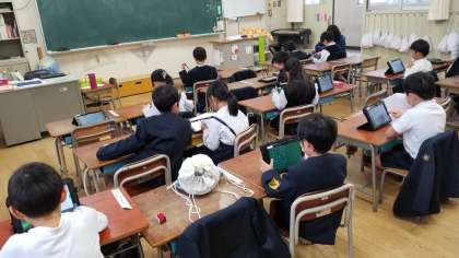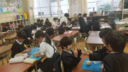 1年生と2年生の様子です。1年はタブレットドリルをやっていました。2年生は粘土つくりなど、工夫してすごしていました。