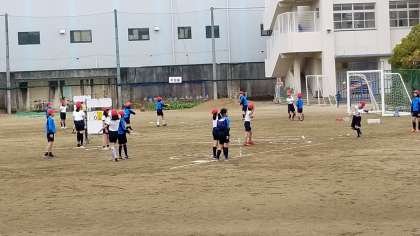 4年1組の体育の様子です。ボール運動をしています。運動場は使用不可の旗が立っていましたが、教頭先生から授業での使用はOKをもらうと、大喜びしていました。