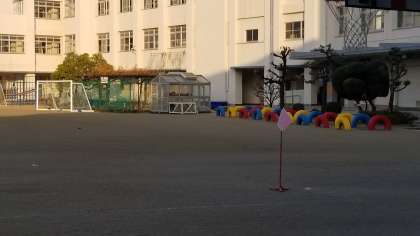昨日の雨で、朝の運動場は使用禁止です。児童朝会も中止になりました。運動場が使えるまでは、教室などで工夫して遊びましょう。