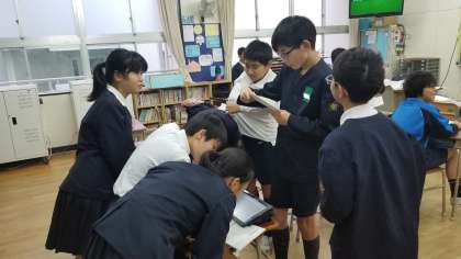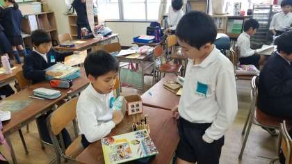 4年生と6年生の教室の様子です。知的ゲームで遊んだり、プリントの丸つけなどをしています。
