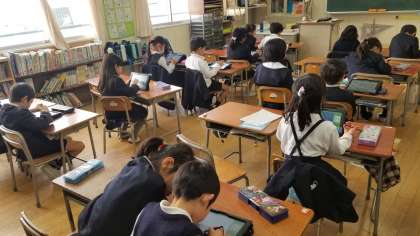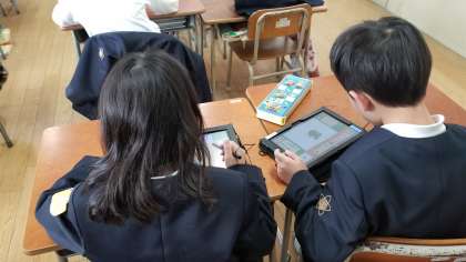 2年2組の様子です。タブレットと使ってドリルをしていました。