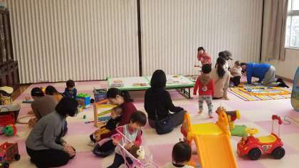 本日、多目的室で、子育て支援サークル「ひまわり」が開催されています。天候も回復して、たくさん参加されています。