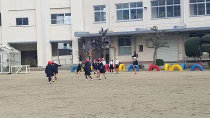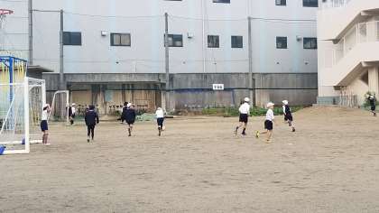 昨日からの雨で、運動場は少し湿った状態ですが、子どもたちは元気に、ドッジボールやサッカーをして遊んでいます。