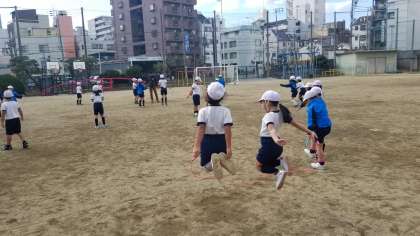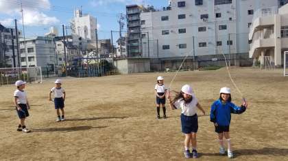 2年2組の体育の様子です。2人で縄跳びをしています。呼吸を合わせて頑張っていました。