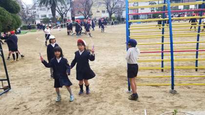 お昼休みの様子です。運動場は子どもたちでいっぱいです。
