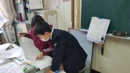 プリントの点検や漢字検定の学習をしています。