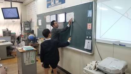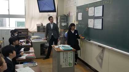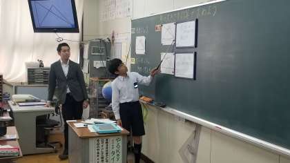 わかっている角度から、未知の角度を求める問題では、考えたことを式に表し、その考え方を発表していました。