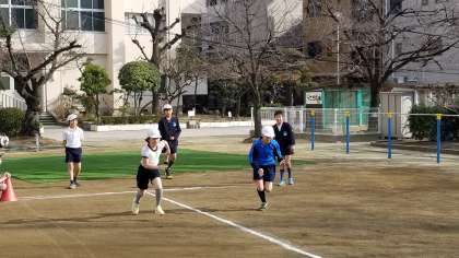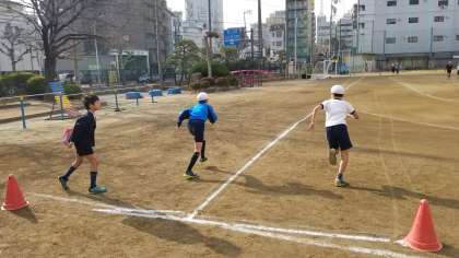 4年2組の体育の様子です。50m走のタイムを計測していました。