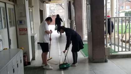 あいさつの当番や美化委員の児童が活動しています。