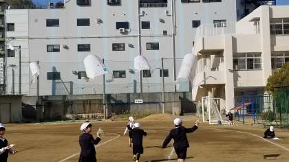 元気いっぱい、たくさんの凧がきれいに上がりました。