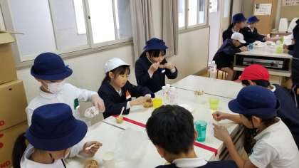 家庭科室で、アルファ化米を炊き出し、試食しました。