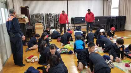 消防署の方や災害救助青年部の指導で、心臓マッサージ体験をしました。