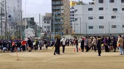 子ども総合震災訓練の最後は、引き渡し訓練です。昨年度の大阪北部地震の時も、余震が予想される中、確実に子どもたちを保護者や学園の先生方に渡すことができました。災害時においてとても大事な訓練だと感じました。今日もご協力ありがとうございました。